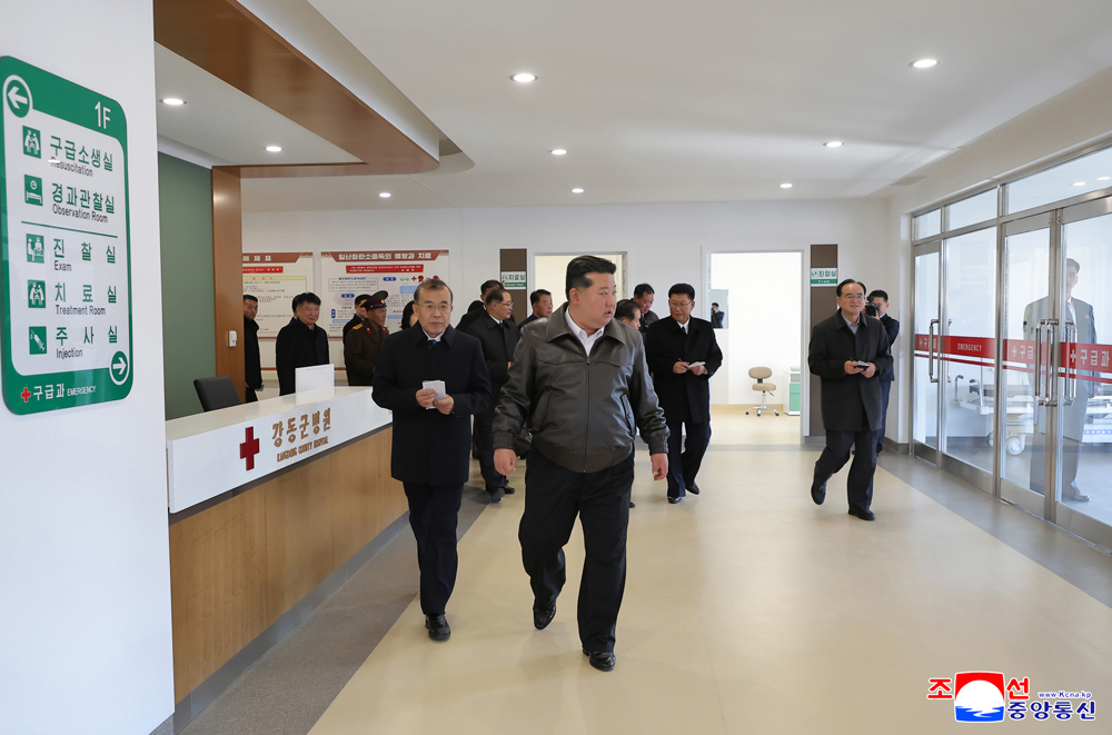 Kim Jong Un, general secretary of the Workers' Party of Korea and president of the State Affairs of the Democratic People’s Republic of Korea, arrived at the Kangdong County Hospital together with leading officials of the Party and government.