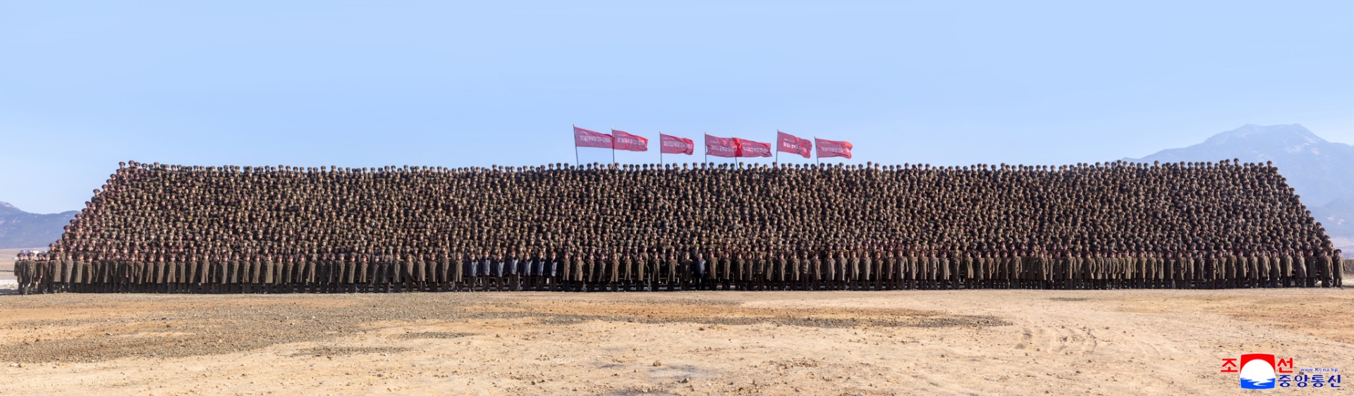 All the soldier-builders loudly shouted in chorus such slogans as "Kim Jong Un" and "Death-defying Defence", in reflection of their pledge of single-minded loyalty to add glory to their noble title - the pioneer of transformation and the creator of happiness for the country and the people - by upholding the deep trust of the Party Central Committee with their spirit of unconditional implementation and staunch practical ability.