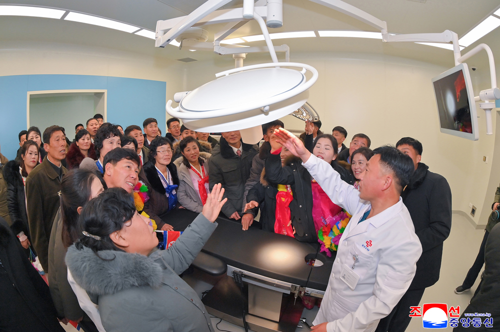 Present at the inauguration ceremony were leading officials of the Party, government and armed forces organs and other members of the central leadership body of the Party, officials concerned, officials of Nampho Municipality and Ryonggang County, working people, soldier-builders and employees of the hospital and the regional-industry factories.