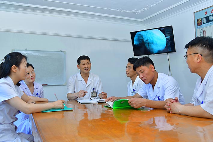 The cardiovascular department at Pyongyang University of Medical Sciences Hospital has improved the quality of medical service with effective procedures based on fine equipment and apparatuses. One of them is sustained drainage for pericarditis with effusion.