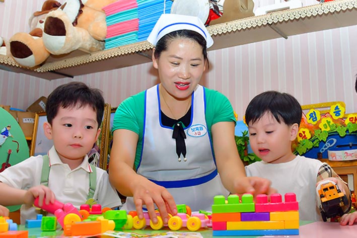 The Tonghung-dong Weekly Nursery in Central District, Pyongyang, directs great efforts to the nursing and education of children.
