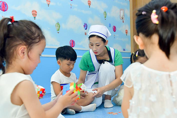 The nursery is taking care of the nutrition of the children in a scientific way.